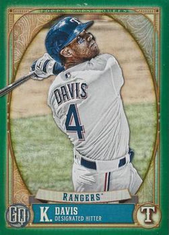 The Khris Davis 2021 Topps Gypsy Queen #43 Green card is 1 of 13 Khris Davis' card variations in the 2021 Topps Gypsy Queen set being tracked by Sports Card Investor, including Base, Bazooka Back, Missing Nameplate, Team Script Font Swap, and Indigo /250.