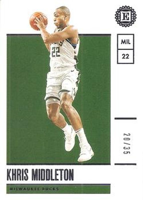 The Khris Middleton 2019 Encased #33 Purple /35 card is 1 of 10 Khris Middleton's card variations in the 2019 Encased set being tracked by Sports Card Investor, including Base /49, Red /25, Blue /15, Gold /10, and Green /5.