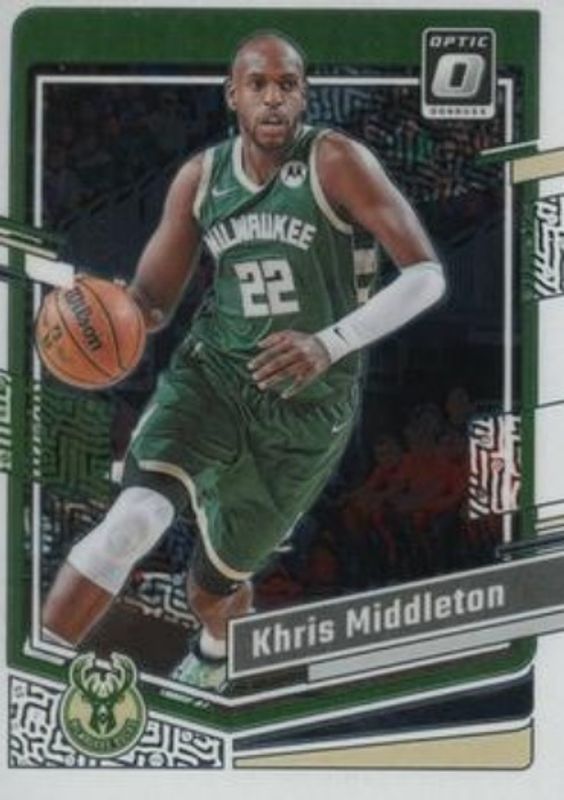 The Khris Middleton 2023 Optic #11 Base card is 1 of 55 Khris Middleton's card variations in the 2023 Optic set being tracked by Sports Card Investor, including Blue Velocity, Checkerboard, Choice Red & Green, Fast Break, and Green Shock.