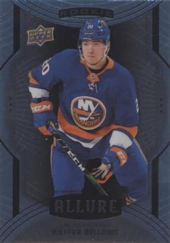 The Kieffer Bellows 2020 Upper Deck Allure #122 Base Rookie card is 1 of 57 Kieffer Bellows' card variations in the 2020 Upper Deck Allure set being tracked by Sports Card Investor, including Base, 2005 Shield, Black Rainbow, Blue China, and Double Rainbow.