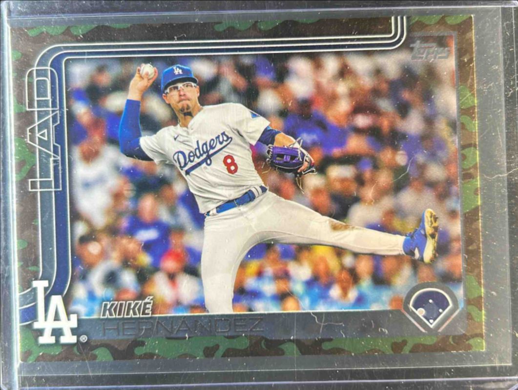 The Kike Hernandez 2025 Topps #616 Wood /25 card is 1 of 58 Kike Hernandez's card variations in the 2025 Topps set being tracked by Sports Card Investor, including Base, Aqua Holo Foil, Diamante Foil, Holo Foil, and Pink Diamante Foil.