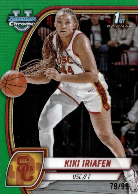 Kiki Iriafen 2024-25 Bowman Chrome U 1st Bowman Green Refractor # 23/99 USC