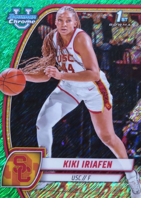 KIKI IRIAFEN 2024-25 Bowman Chrome U 1st Rookie GREEN SHIMMER #47 USC Trojans