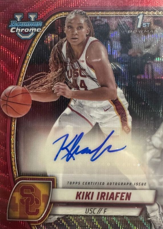 2024-25 Bowman University Chrome Kiki Iriafen #47 Red Wave Refractor 39/45 Auto