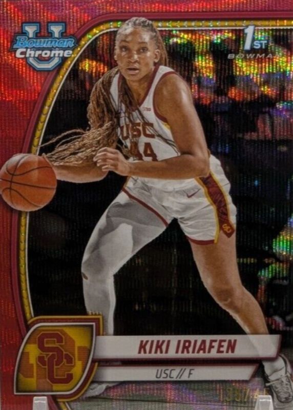 Best Prices Available For Sale of Kiki Iriafen 2024 Bowman Chrome University #47 Red Wave Refractor /45 (1st)