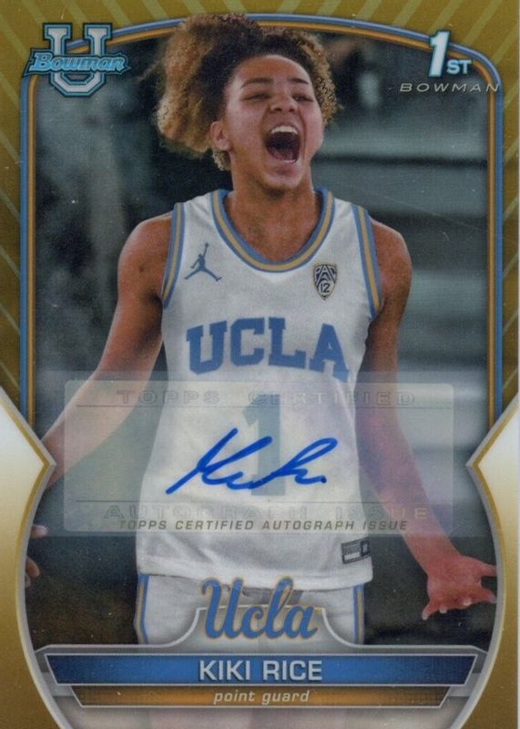 KIKI RICE 2022-23 BOWMAN CHROME UNIVERSITY #24 PROSPECT AUTO GOLD 10/50 BRUINS