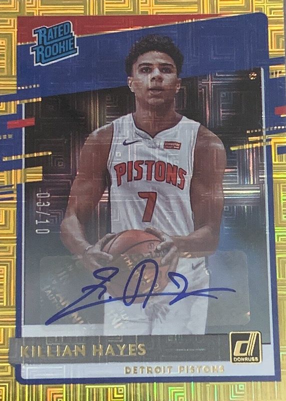 The Killian Hayes 2020 Donruss #204 Rated Rookie Signatures - Choice Gold /10 card in Raw condition has not changed in price in the last 30 days and was last sold for $90.00 .