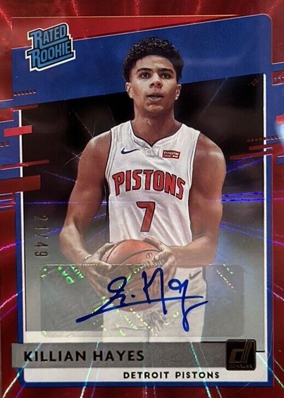 The Killian Hayes 2020 Donruss #204 Rated Rookie Signatures - Holo Red Laser /49 card in Raw condition has not changed in price in the last 30 days and was last sold for $5.00 .