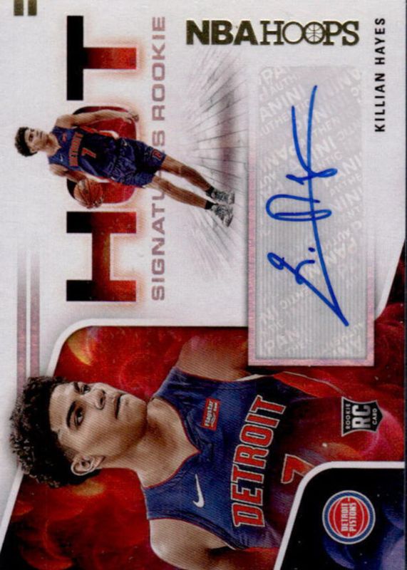 The Killian Hayes 2020 Hoops #HR-KHY Hot Signatures Rookies card in Raw condition has not changed in price in the last 30 days and was last sold for $9.00 .