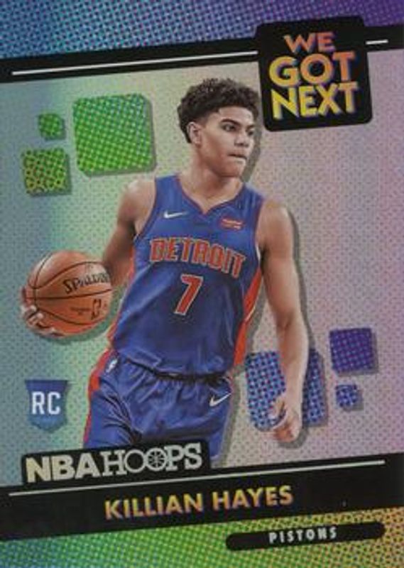The Killian Hayes 2020 Hoops #7 We Got Next - Holo Rookie card is 1 of 45 Killian Hayes' card variations in the 2020 Hoops set being tracked by Sports Card Investor, including Base, Blue, Hyper Blue, Neon Green, and Purple.