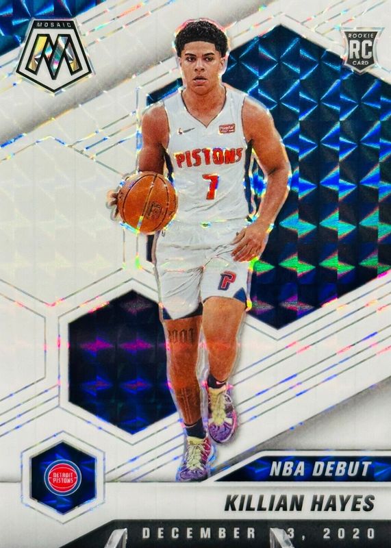 The Killian Hayes 2020 Mosaic #270 NBA Debut - White /25 Rookie card in Raw condition has not changed in price in the last 30 days and was last sold for $3.75 .