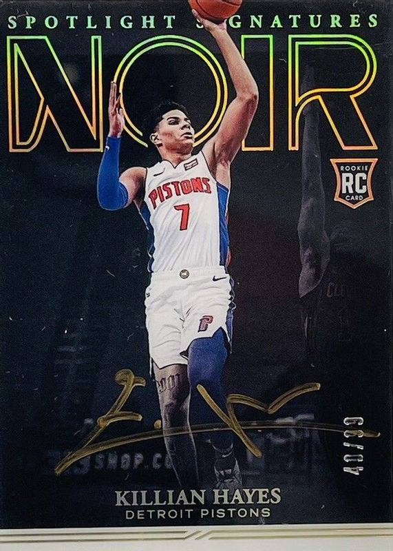 The Killian Hayes 2020 Noir Spotlight Signatures /99 Rookie card in Raw condition has not changed in price in the last 30 days and was last sold for $29.00 .
