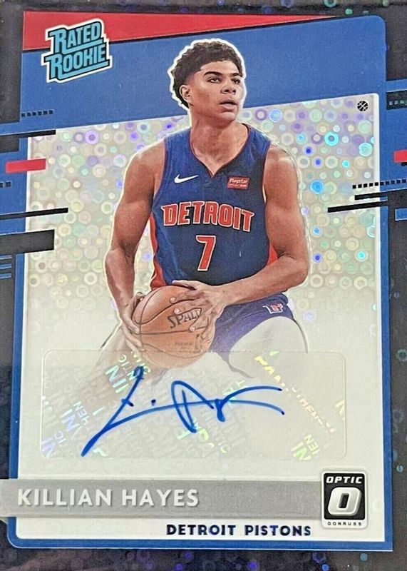 This card is 1 of 82 Killian Hayes' card variations in the 2020 Optic set being tracked by Sports Card Investor, including Base, Blue Pulsar, Blue Velocity, Checkerboard, and Choice.
