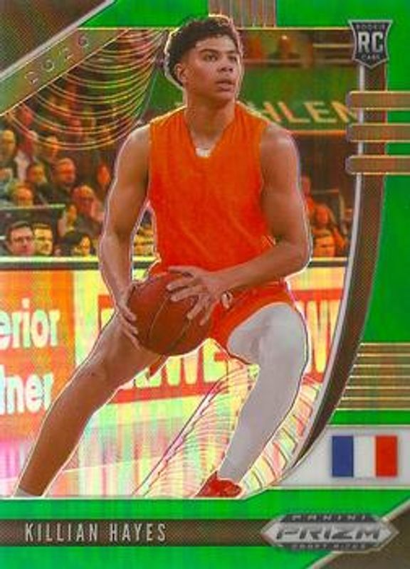 The Killian Hayes 2020 Prizm Draft Picks #52 Green Rookie card is 1 of 153 Killian Hayes' card variations in the 2020 Prizm Draft Picks set being tracked by Sports Card Investor, including #96 Base, #12 Base, #52 Base, #92 Base, and #96 Choice Blue Yellow Green.