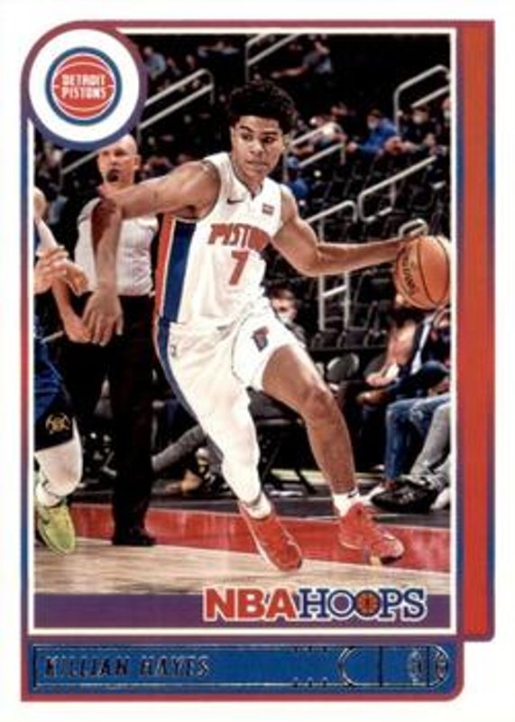 The Killian Hayes 2021 Hoops #175 Base card is 1 of 24 Killian Hayes' card variations in the 2021 Hoops set being tracked by Sports Card Investor, including Anniversary Edition, Blue, Green Ice, Hyper Blue, and Neon Green.
