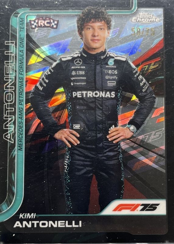 2025 Topps Chrome F1 Kimi Antonelli RC Portrait 75th Annv. Refractor 58/75 #8