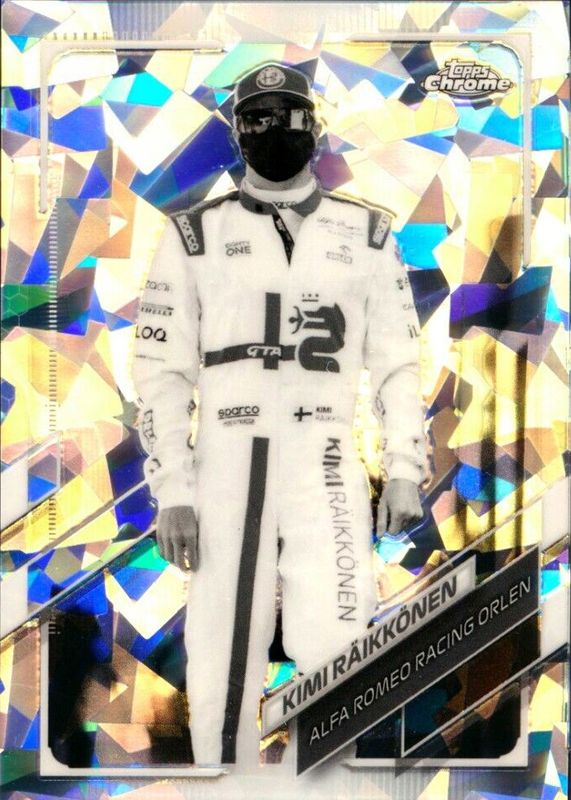 Kimi Raikkonen's Racing cards are available in at least 10 sets. Kimi Raikkonen's biggest 7-day price movers are 2021 Topps Chrome Formula 1 Sapphire Edition #15 Black & White /15, 2020 Topps Chrome Formula 1 #15 Base, and 2020 Topps Chrome Formula 1 Sapphire Edition #15 70th Anniversary /70.