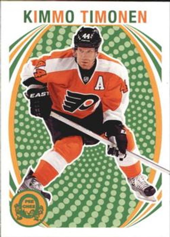 The Kimmo Timonen 2013 O-Pee-Chee #256 Retro card is 1 of 6 Kimmo Timonen's card variations in the 2013 O-Pee-Chee set being tracked by Sports Card Investor, including Base, Rainbow, Red, Retro Blank Back, and Black Rainbow /100.