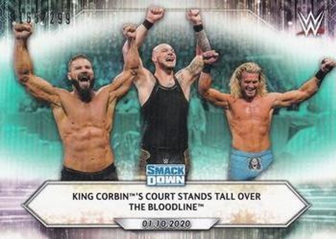 The King Corbin 2021 Topps WWE #5 Aqua /299 card is 1 of 117 King Corbin's card variations in the 2021 Topps WWE set being tracked by Sports Card Investor, including #37 Base, #39 Base, #43 Base, #49 Base, and #5 Base.