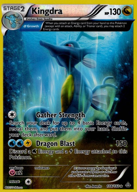 The Kingdra 2015 XY: Primal Clash #108/160 Reverse Holo card in Raw TCG (Lightly Played) condition has moved down -$3.99 (-30.7%) in the last 30 days and was last sold for $9.00 .