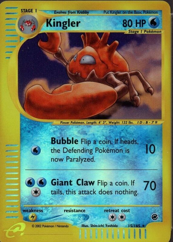 Kingler 2002 Expedition #015/165 Reverse Holo RAW TCG (NEAR MINT) Price Guide