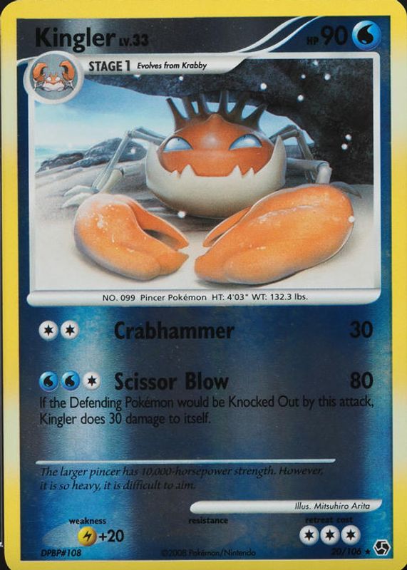 Kingler 2008 Diamond & Pearl: Great Encounters #020/106 Reverse Holo RAW TCG (LIGHTLY PLAYED) Price Guide