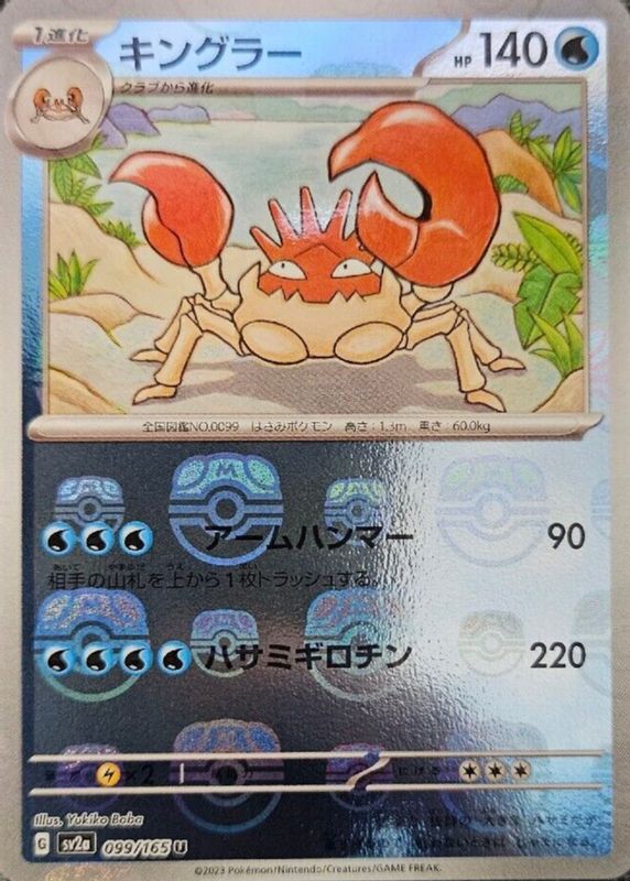 Kingler 2023 Japanese Scarlet & Violet: 151 #099/165 Master Ball Reverse Holo RAW TCG (NEAR MINT) Price Guide
