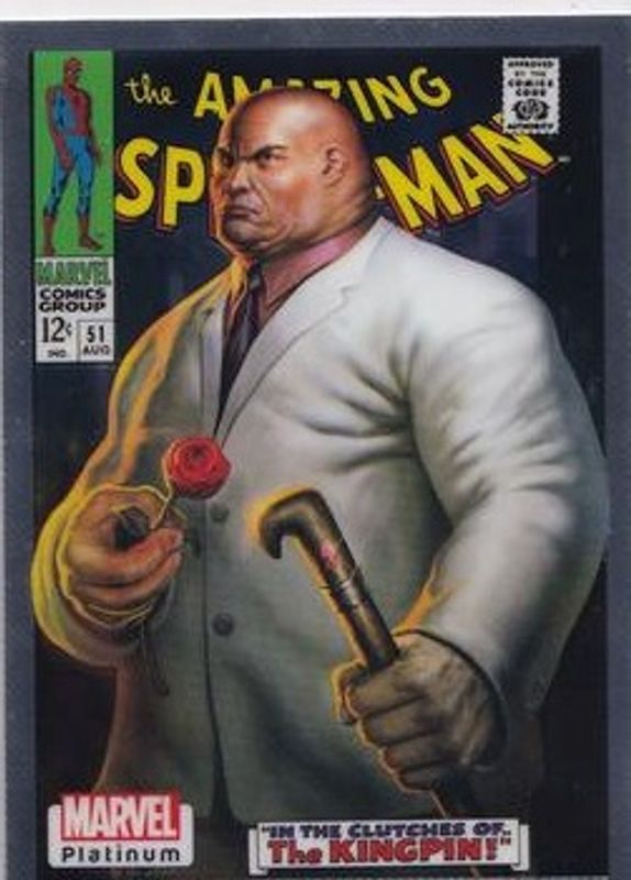 The Kingpin 2023 Upper Deck Marvel Platinum #WI84 Cover Variant card is 1 of 47 Kingpin's card variations in the 2023 Upper Deck Marvel Platinum set being tracked by Sports Card Investor, including Base, Black Rainbow, Blue Rainbow, Blue Surge, and Purple Rainbow.