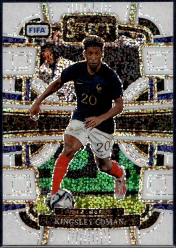 The Kingsley Coman 2023 Select FIFA #82 White Sparkle card is 1 of 36 Kingsley Coman's card variations in the 2023 Select FIFA set being tracked by Sports Card Investor, including Base, Blue, Checkerboard, Green Ice, and Multi Color.