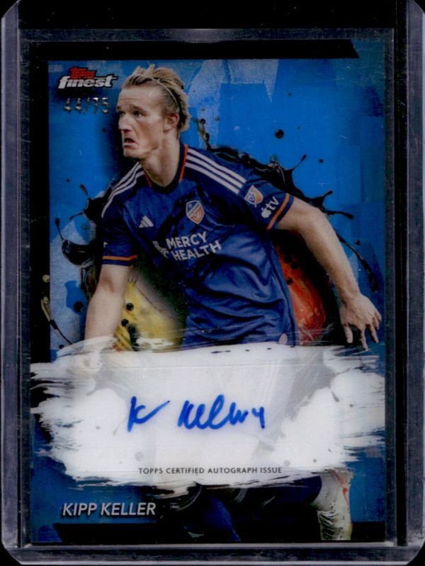 The Kipp Keller 2024 Topps Finest MLS #BA-KP Autographs - Blue Refractor /75 card is 1 of 7 Kipp Keller's card variations in the 2024 Topps Finest MLS set being tracked by Sports Card Investor, including Autographs, Autographs - Neon Green Refractor /99, Autographs - Gold Refractor /50, Autographs - Orange Refractor /25, and Autographs - Black Refractor /10.