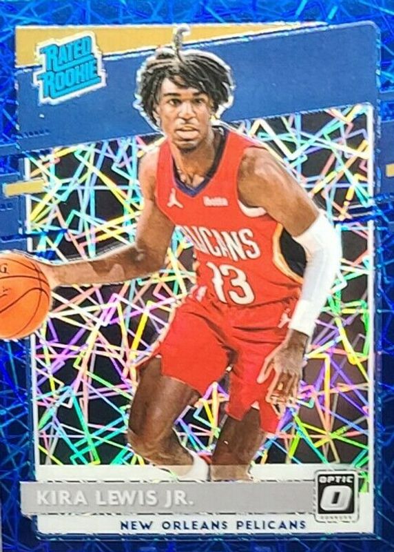 The Kira Lewis Jr. 2020 Optic #163 Blue Velocity Rookie card in Raw condition has not changed in price in the last 30 days and was last sold for $1.25 .
