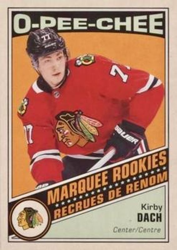 The Kirby Dach 2019 Upper Deck #612 2019 O-Pee-Chee Update Retro Blank Back Rookie card is 1 of 45 Kirby Dach's card variations in the 2019 Upper Deck set being tracked by Sports Card Investor, including Young Guns Base, Young Guns Canvas, Young Guns - Clear Cut, Young Guns - Clear Cut Exclusives, and Young Guns - Silver Foil.