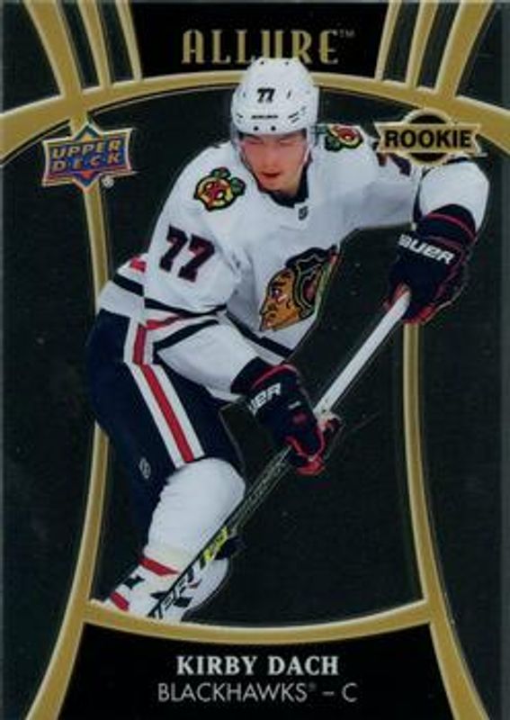 The Kirby Dach 2019 Upper Deck Allure #107 Base Rookie card is 1 of 42 Kirby Dach's card variations in the 2019 Upper Deck Allure set being tracked by Sports Card Investor, including Base, Pewter, Pink Diamond, Red Rainbow, and White Rainbow.
