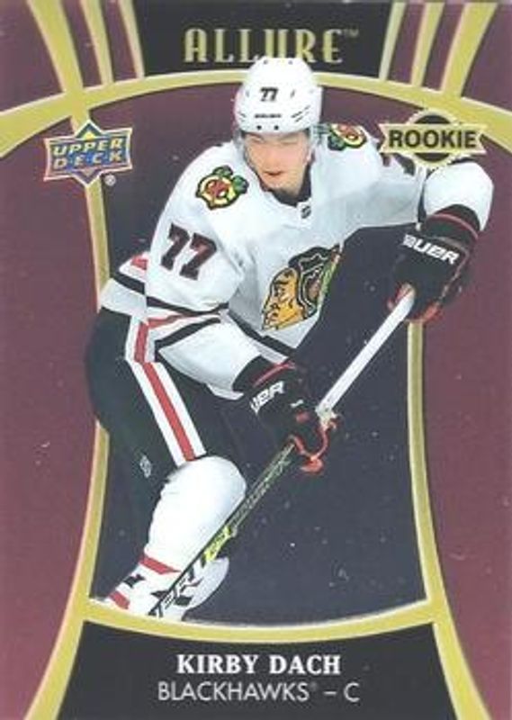 The Kirby Dach 2019 Upper Deck Allure #107 Pink Diamond Rookie card is 1 of 42 Kirby Dach's card variations in the 2019 Upper Deck Allure set being tracked by Sports Card Investor, including #107 Base, #89 Base, #89 Pewter, #89 Red Rainbow, and #89 White Rainbow.
