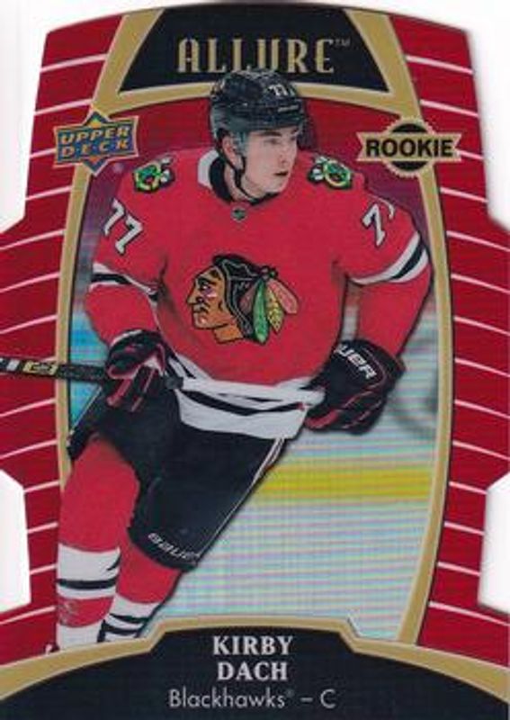 The Kirby Dach 2019 Upper Deck Allure #89 Red Rainbow Rookie card is 1 of 42 Kirby Dach's card variations in the 2019 Upper Deck Allure set being tracked by Sports Card Investor, including #107 Base, #89 Base, #89 Pewter, #107 Pink Diamond, and #89 White Rainbow.