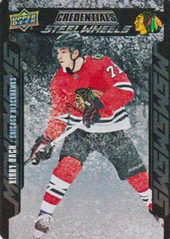 The Kirby Dach 2019 Upper Deck Credentials #SW-11 Steel Wheels Rookie card is 1 of 22 Kirby Dach's card variations in the 2019 Upper Deck Credentials set being tracked by Sports Card Investor, including Base /699, Red /99, Green /25, Purple /10, and Black /1.