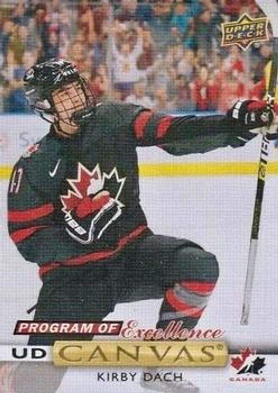 The Kirby Dach 2019 Upper Deck #C263 UD Canvas Rookie card is 1 of 45 Kirby Dach's card variations in the 2019 Upper Deck set being tracked by Sports Card Investor, including Young Guns Base, Young Guns Canvas, Young Guns - Clear Cut, Young Guns - Clear Cut Exclusives, and Young Guns - Silver Foil.