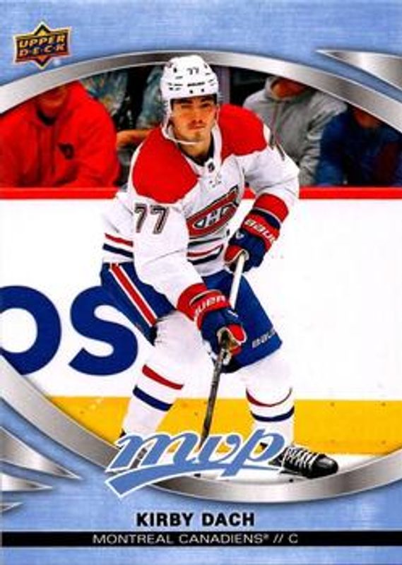 The Kirby Dach 2023 Upper Deck MVP #82 Base card is 1 of 17 Kirby Dach's card variations in the 2023 Upper Deck MVP set being tracked by Sports Card Investor, including Gold Script, Ice Battles, Silver Script, Super Script /25, and Super Script Black /5.