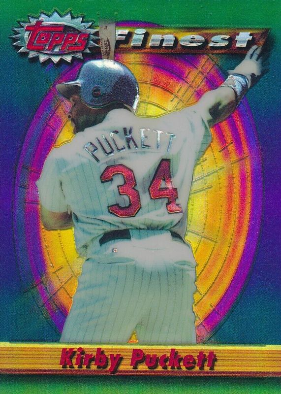 The Kirby Puckett 1994 Topps Finest #204 Refractor card in Raw condition has moved up $5.00 (+12.5%) in the last 30 days and was last sold for $45.00 .