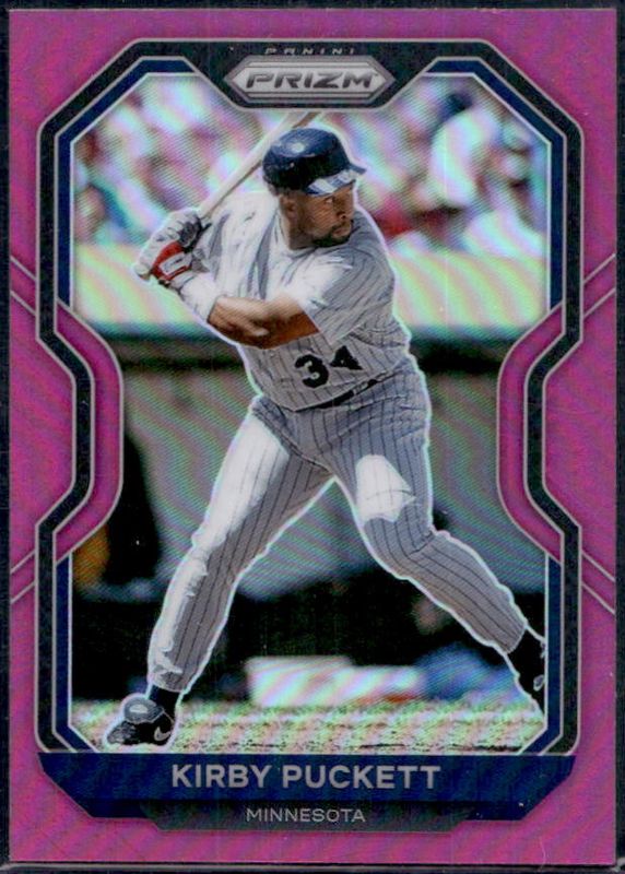The Kirby Puckett 2021 Prizm #228 Pink card is 1 of 43 Kirby Puckett's card variations in the 2021 Prizm set being tracked by Sports Card Investor, including Base, Blue, Blue Velocity, Carolina Blue, and Cosmic Haze.
