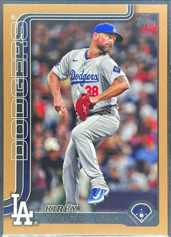 The Kirby Yates 2025 Topps #397 Gold /2025 card is 1 of 57 Kirby Yates' card variations in the 2025 Topps set being tracked by Sports Card Investor, including Base, Aqua Holo Foil, Diamante Foil, Holo Foil, and Pink Diamante Foil.