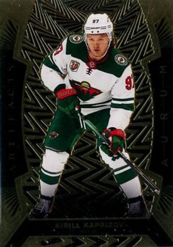 The Kirill Kaprizov 2021 Upper Deck Artifacts #A-24 Aurum card is 1 of 30 Kirill Kaprizov's card variations in the 2021 Upper Deck Artifacts set being tracked by Sports Card Investor, including Base /999, Neon Green, Rose Gold, Turquoise, and Ruby /499.