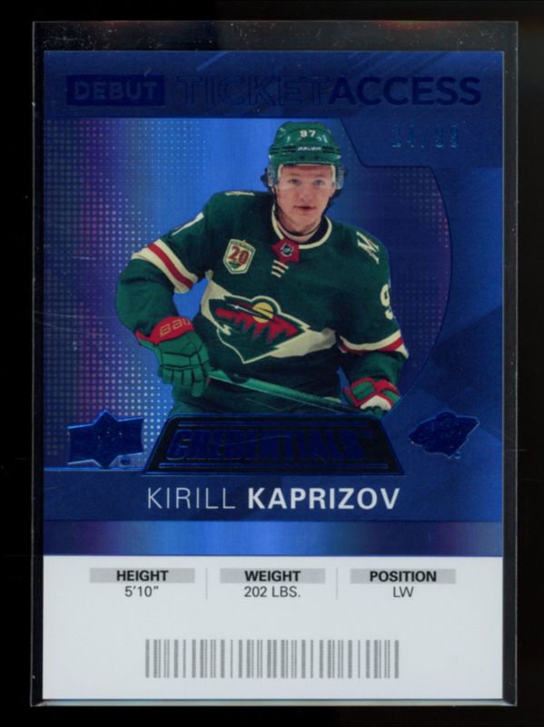 Kirill Kaprizov 2021 Upper Deck Credentials #144 2020 Debut Ticket Access - Blue /99 RAW Price Guide