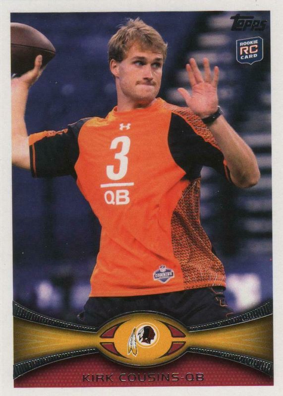 The Kirk Cousins 2012 Topps #326 Base Rookie card in Raw condition has moved up $0.03 (+1.5%) in the last 30 days and was last sold for $2.00 .
