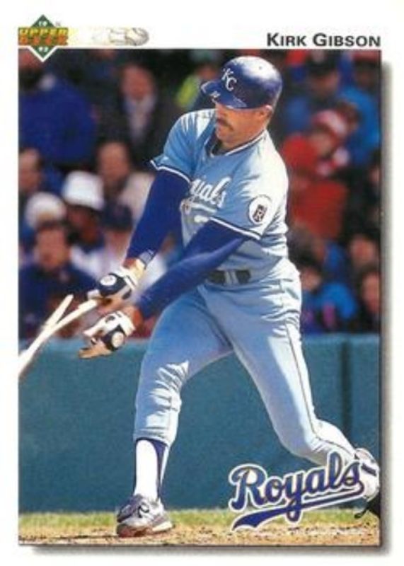 The Kirk Gibson 1992 Upper Deck #180 Gold Hologram card is 1 of 2 Kirk Gibson's card variations in the 1992 Upper Deck set being tracked by Sports Card Investor, including Base.