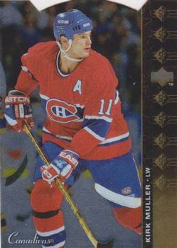 The Kirk Muller 1994 Upper Deck #SP-40 SP die-cut card is 1 of 5 Kirk Muller's card variations in the 1994 Upper Deck set being tracked by Sports Card Investor, including Base, Electric Ice, Ice Gallery, and SP.