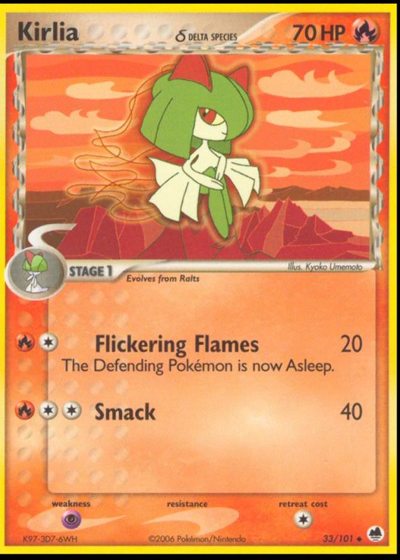 The Kirlia 2006 EX: Dragon Frontiers #033/101 Base card in Raw TCG (Lightly Played) condition has moved up $0.84 (+50.5%) in the last 30 days and was last sold for $2.49 .