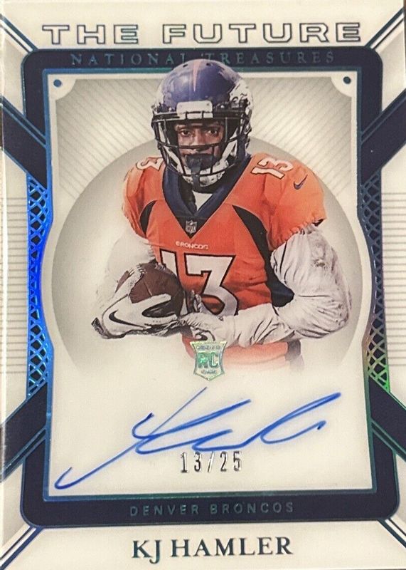The KJ Hamler 2020 National Treasures #TF-KH The Future Autographs /25 Rookie card in Raw condition has not changed in price in the last 30 days and was last sold for $18.50 .