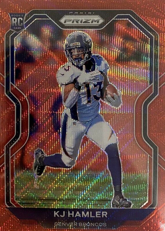 KJ HAMLER 2020 PANINI RED WAVE PRIZM #315 SP RC ROOKIE DENVER BRONCOS #d/149