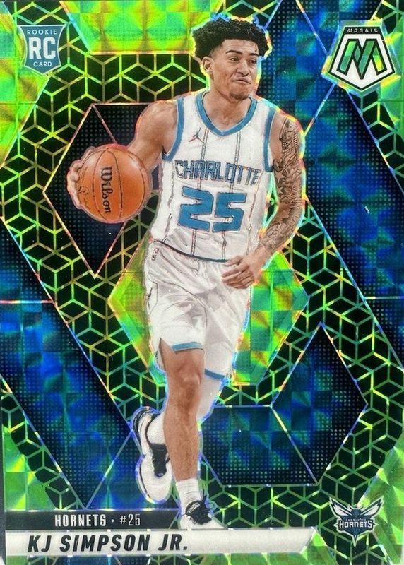 This card is 1 of 66 KJ Simpson Jr.'s card variations in the 2024 Mosaic set being tracked by Sports Card Investor, including Base, Choice Red & Green, Fast Break, Green, and Green Ice.